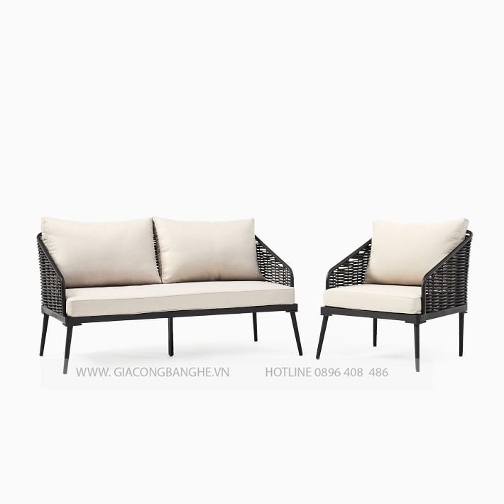 Sofa được cập nhật kiểu dáng đẹp, có đệm với ghế sofa mây ngoài trời, chân kim loại giữ chống gỉ sét chắc chắn và được phủ lớp sơn tĩnh điện tạo màu sắc đẹp, cảm giác nhẹ nhàng và thoáng mát. Chất liệu mây đan dẻo dai chịu được mọi thời tiết.
