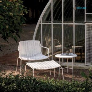 Armchair ngoài trời đan dây dù SKLC079 có chân ghế được làm từ ống thép sơn tĩnh điện, chống gỉ sét và tạo màu sắc cho ghế. Ghế sử dụng dây dù chắc chắn, chất lượng cao riêng biệt sử dụng cho không gian ngoài trời có độ bền cao.