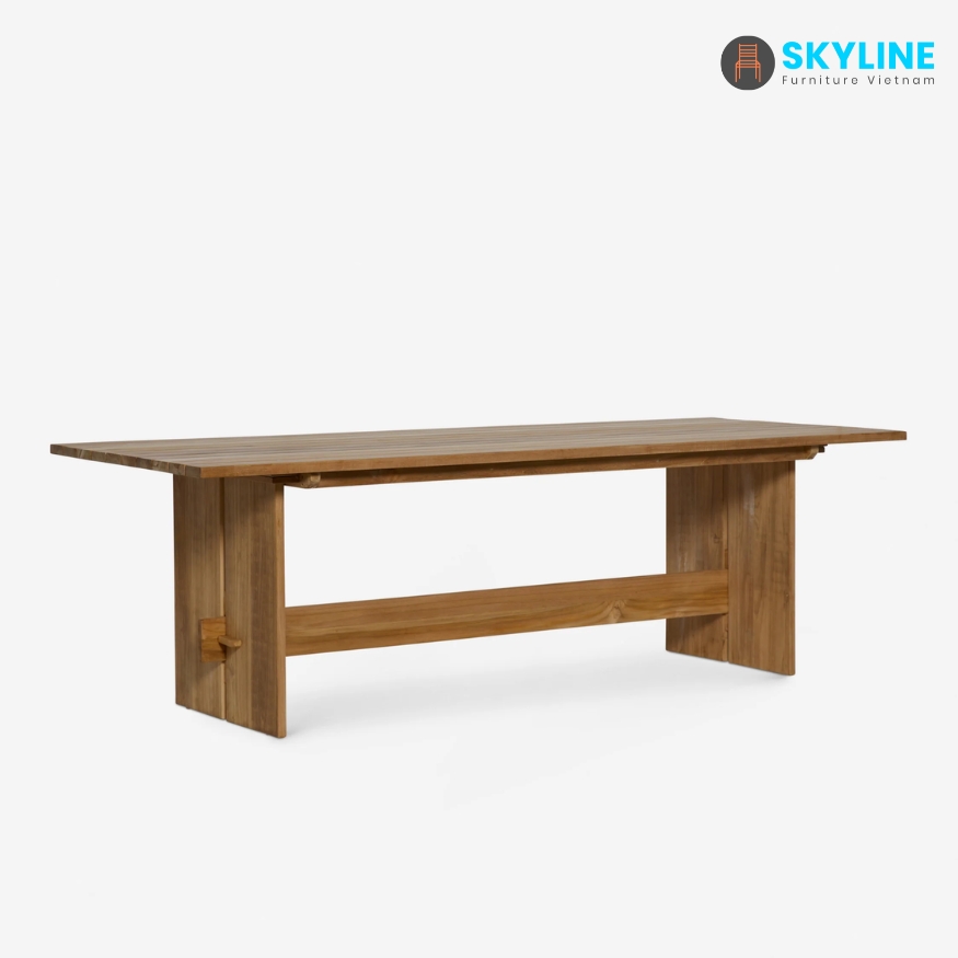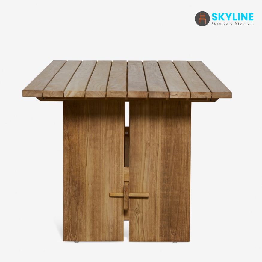 Bàn ăn cao cấp SKLT034 khung được làm từ gỗ Teak tự nhiên xử lý sơn PU ngoài trời, có thể sử dụng ngoài trời độ bền cao chống chọi tốt với thời tiết.