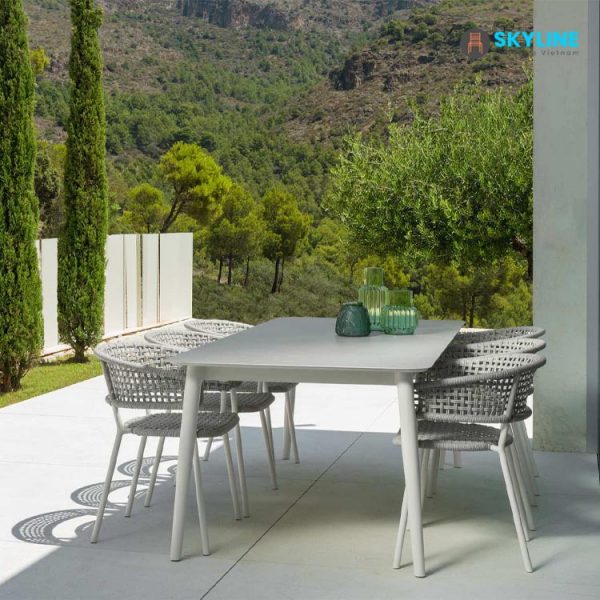 Với kinh nghiệm nhiều năm trong lĩnh vực sản xuất và gia công bàn ghế theo yêu cầu, cùng với đội ngũ nhân sự chuyên nghiệp, Skyline sẽ mang đến cho khách hàng những sản phẩm đa dạng về kiểu dáng, mẫu mã, chất liệu với sự phong phú. Qua đây Skyline giới thiệu đến bạn mẫu bàn ăn ngoài trời phù hợp với các không gian sân vườn, ban công, hồ bơi, quán cafe, nhà hàng, resort,…