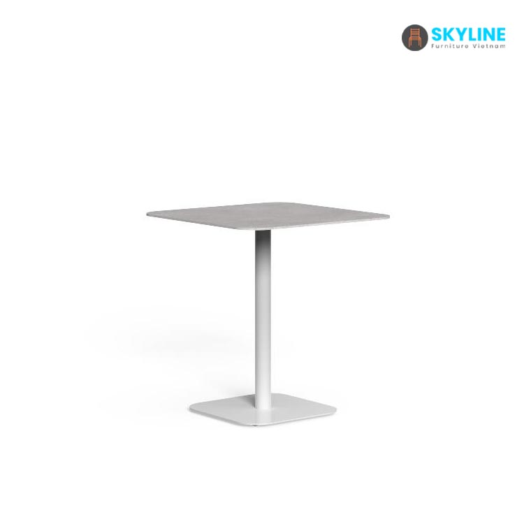 Bàn cà phê ngoài trời SKLT030 được làm từ ống thép sơn tĩnh điện, mặt bàn đá tự nhiên/ đá nhân tạo, bê tông siêu nhẹ, gỗ ngoài trời hoặc kính cường lực, có độ bền cao.