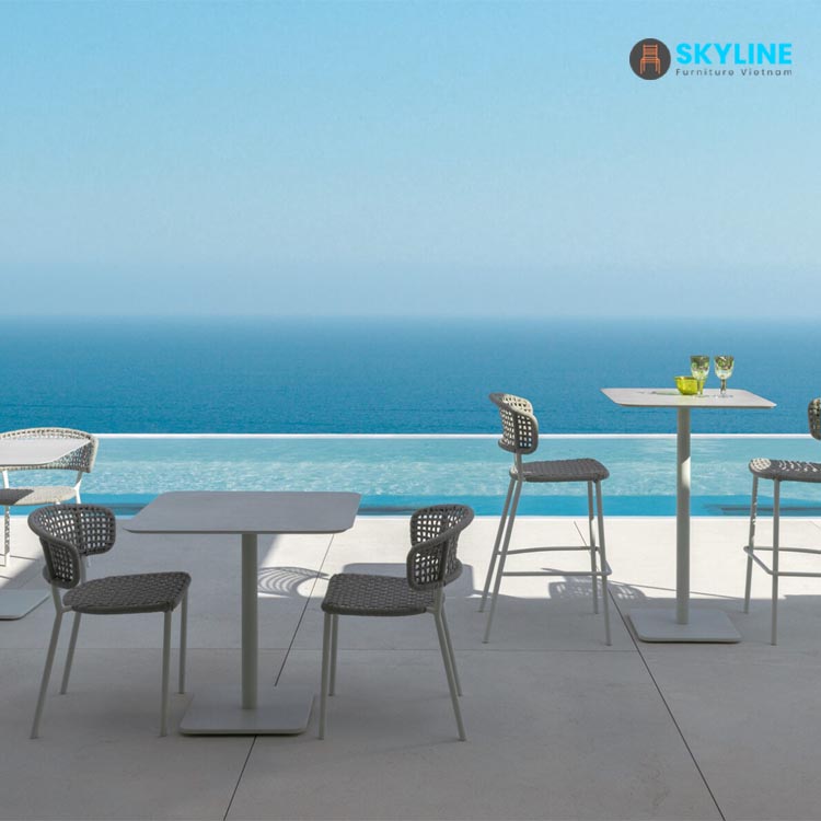 Bàn cà phê ngoài trời sử dụng kèm với các dòng ghế cafe, ghế ăn ghế bar hoặc armchair ngoài trời, kích thước gọn, đơn giản nhưng tinh tế thích hợp cho khu vực ngoài trời, chịu được thời tiết tốt. Bàn cafe ngoài trời SKLT030 sử dụng nhiều trong các khu nghỉ dưỡng khách sạn, nhà hàng, resort, quán cafe, quán bar… hoặc có thể sử dụng cho chính bản thân bạn ở phòng khách, sân sau hoặc ban công.