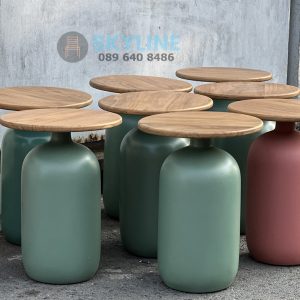 Vật liệu cấu tạo thân bình được đúc thủ công từ vật liệu composite để tạo nét thẩm mỹ đẹp, hoàn hảo chỉnh chu cho sản phẩm. Mặt bàn được làm từ gỗ teak màu gỗ tự nhiên bền bỉ với thời gian.