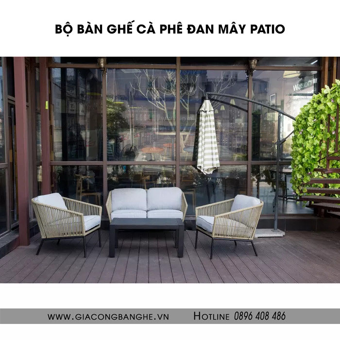 - Bàn ghế đan mây nhựa, đan dây dù.