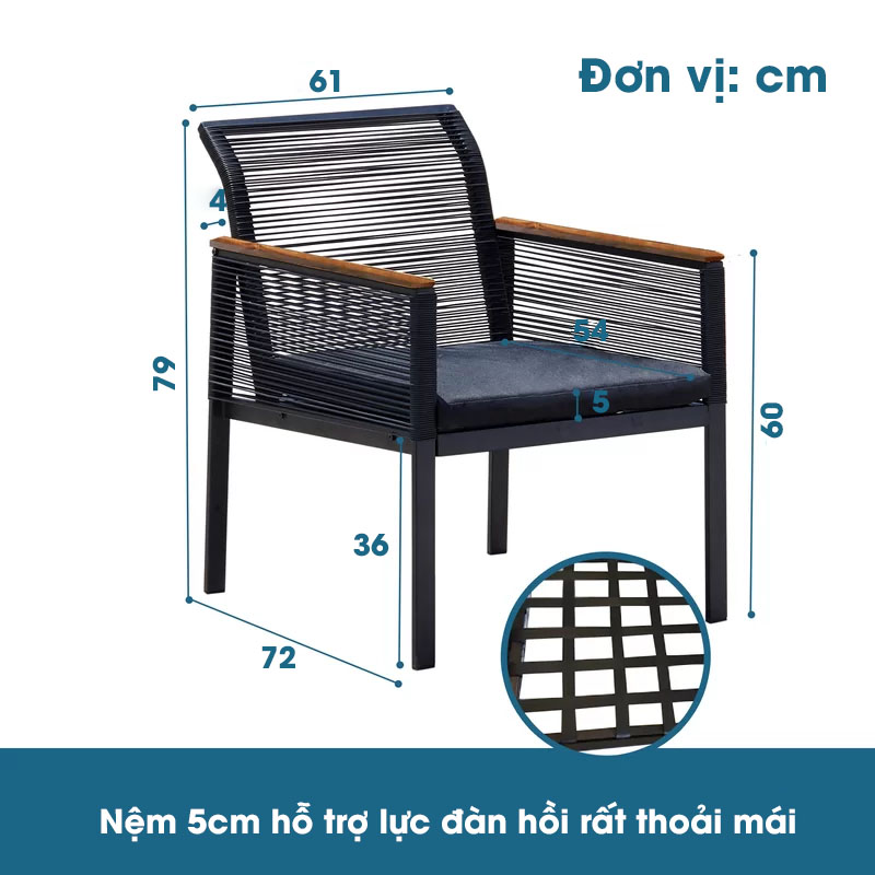 • Kích thước ghế đơn: 79 cao x 61 rộng x 72 dài cm