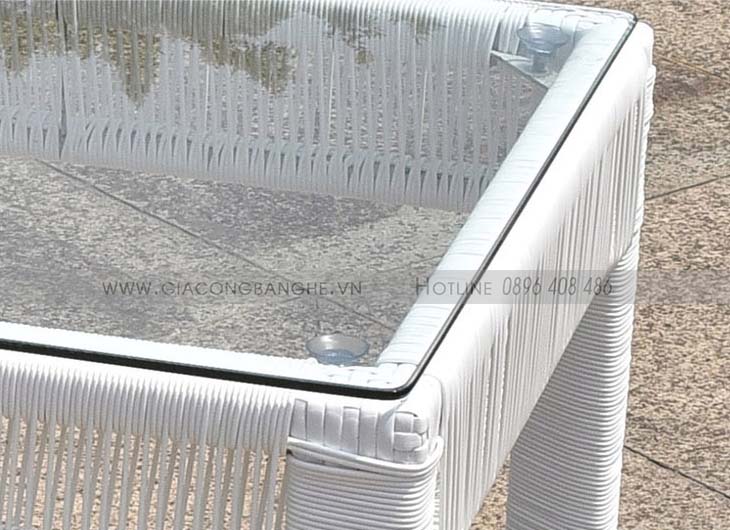 Bộ bàn ghế mây nhựa SKLC065 dùng dây PE ( mây nhựa) cao cấp, được đan bằng tay thủ công, không chứa formaldehyde, thân thiện với môi trường, chống tia cực tím, chống thấm. Bàn kèm theo kính kính cường lực, kính cố định bằng nút siêu hút NC, chắc chắn và độ thẩm mỹ cao.
