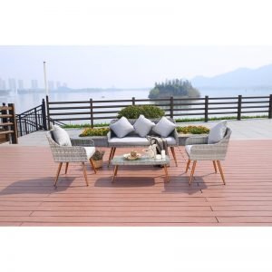 Bộ bàn ghế ngoài trời SKLC041 mang phong cách cổ điển của đồ nội thất ngoài trời và thêm một chút hiện đại với chân nhôm sơn tĩnh điện, kết hợp với vải thiết kế bền, chống tia uv, chịu thời tiết tốt, thoáng nhanh khô, bộ ghế sofa với đệm này là sự bổ sung hoàn hảo cho sân vườn ngoài trời.