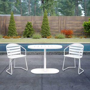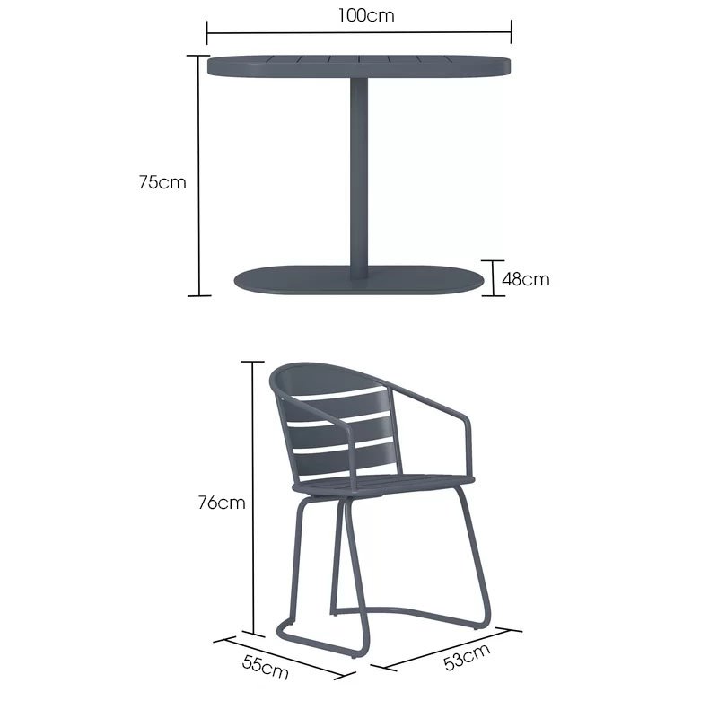 Bàn ghế sắt ngoài trời SKLC039 với hai chiếc ghế bành tựa lưng xinh xắn và một chiếc bàn có đế hình bầu dục, vừa vặn thoải mái trong không gian nhỏ của bạn, khiến nó thực sự thú vị. Khi không sử dụng, bạn chỉ cần trượt dễ dàng cả hai chiếc ghế lên bàn để chúng nép vào nhau như những mảnh ghép.