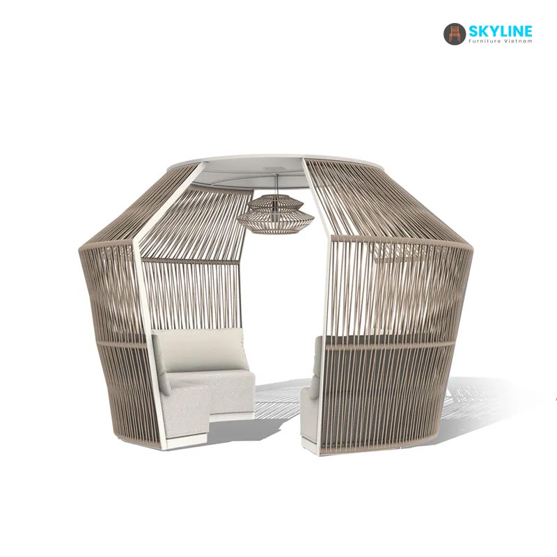 Bộ sofa sân vườn SKLS040 có chỗ ngồi rộng và hình tròn khiến nó trở nên hoàn hảo cho những giây phút thư giãn trong vườn hoặc bên hồ bơi kết hợp bàn trà hình tròn mềm mại, trong khi phần trên của ghế mang lại bóng râm tinh tế khỏi những tia nắng gay gắt nhất. Tính thẩm mỹ tinh tế được kết hợp với cấu trúc chắc chắn và bền để sử dụng trong nhà lẫn sân vườn.