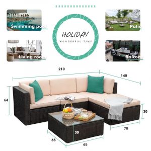 - Chất liêu: khung nhôm sơn tĩnh điện, mây PE, vải ngoài trời, kính cường lực.
