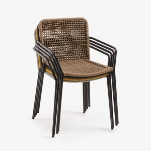 Ghế cà phê ngoài trời SKLC029 đan dây dù nổi bật với thiết kế ghế ngồi được làm bằng dây dù (dây thừng). Chống lại tia UV, có nghĩa là bạn cũng có thể sử dụng chúng ngoài trời. Bạn có thể tận hưởng khoảnh khắc thư giãn của mình một cách trọn vẹn.