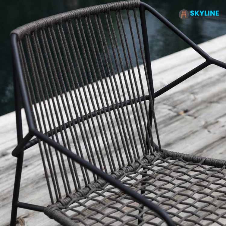 Ngồi trên chiếc ghế cafe ngoài trời SKLC010 thoải mái hơn thế tất cả nhờ một thiết kế tiện lợi sử dụng kiểu đan dây dù mở độc đáo.