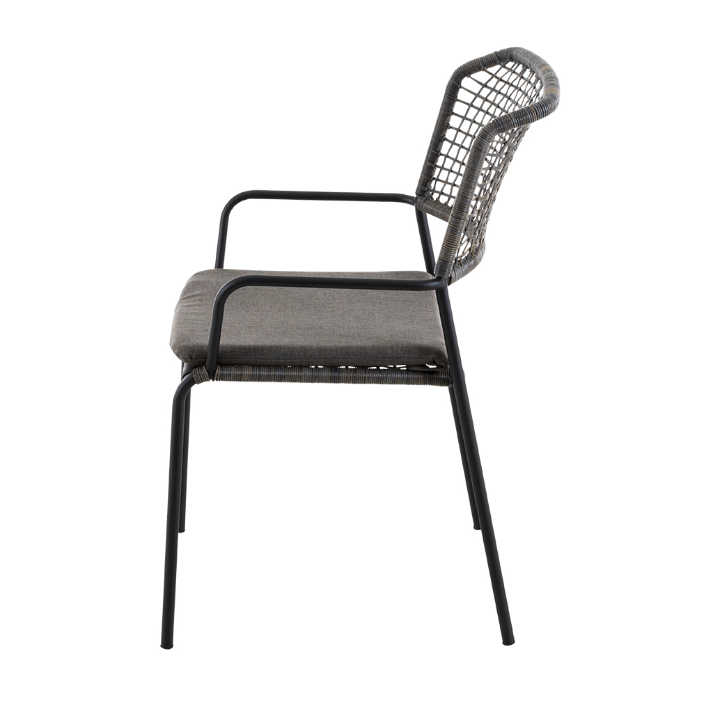 Ghế đan mây nhựa SKLC020 có kết cấu khung kim loại sơn tĩnh điện, trang trí bằng dây mây nhựa hoặc dây dù. Ghế đan mây nhựa có bổ sung đệm ngồi nếu cần tạo độ êm ái hơn.