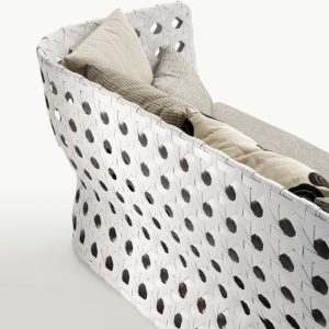 Ghế sofa nhựa giả mây SKLS013 có khung làm bằng nhôm sơn trắng và lưới sợi polyethylene màu trắng. Sản phẩm được làm bằng chất liệu polyester sơn tĩnh điện chịu được khí hậu. Bộ đệm lưng đề xuất cho sản phẩm gồm: Đệm lưng số 1 cm 48 x 48 + Đệm lưng số 1 cm 55 x 40