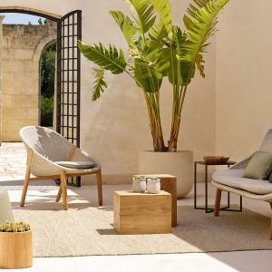 • Chất liệu: Sắt/ nhôm/ inox sơn tĩnh điện, vải ngoài trời, mousse D20/ D40, mây nhân tạo.