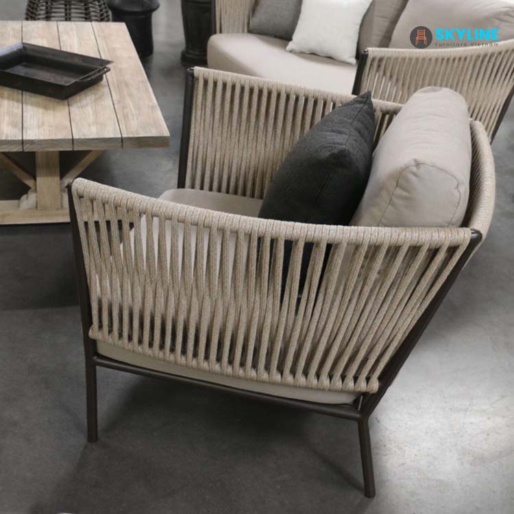 Ghế thư giãn cao cấp SKLC016 đan dây dù được ứng dụng ở các vị trí không gian sang trọng, hiện đại như sảnh chờ nhà hàng, khách sạn, phòng khách ngoài trời, sân vườn biệt thự villa, resot,…