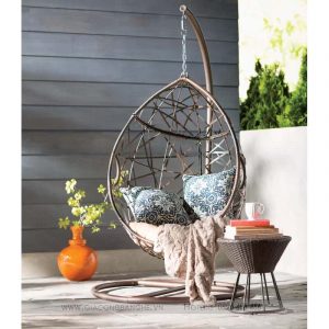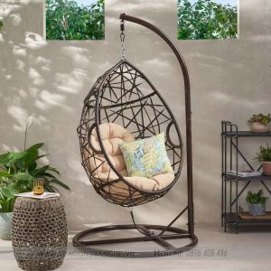 Chiếc ghế xích đu mây nhựa duyên dáng được làm từ đan lát lưới dày màu nâu, chiếc ghế này sẽ giúp bạn cảm giác thoải mái, thư giãn. Có khung được làm từ sắt được phủ sơn tĩnh điện màu theo sở thích và phù hợp không gian của bạn.