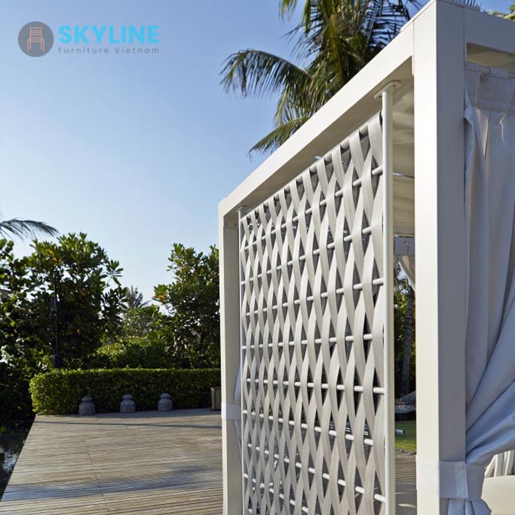 - Khung nhôm bền được bọc bằng mây nhân tạo chịu mọi thời tiết để sử dụng lâu dài.