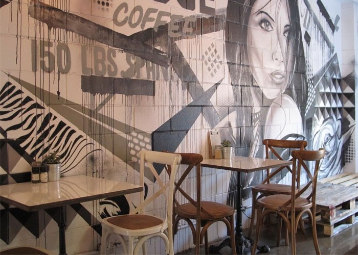 “Độc – lạ” chính là điểm thu hút của phong cách này. Cách bố trí và phối màu sẽ không tuân theo các quy tắc thông thường. Các bức tường được trang trí bằng các hình vẽ tay như Gravity, Typography,… sẽ tạo điểm nhấn và cá tính cho quán cafe theo cách trang trí này.