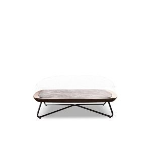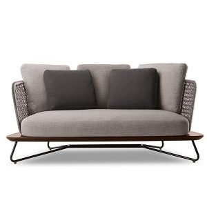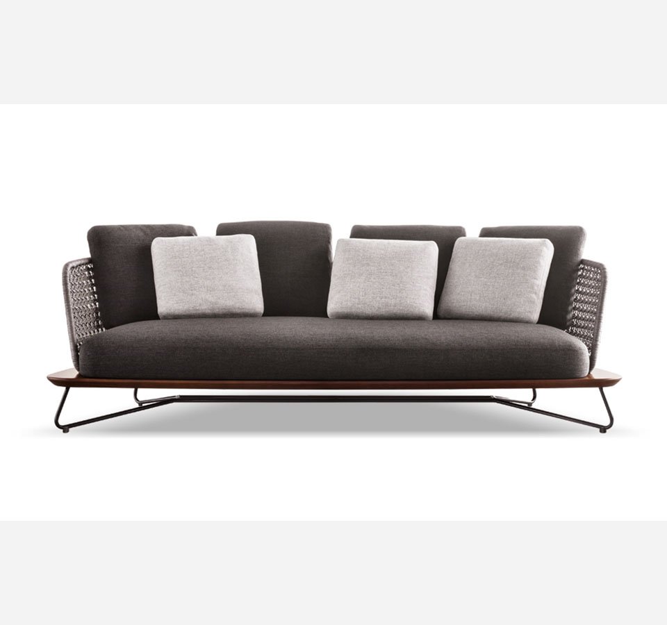Sofa ngoài trời SKLS006 có chân đế được làm thủ công bằng gỗ sồi tâm loại gỗ chắc chắn và độ bền cao. Khung kim loại, bao gồm chân đế inox và lưng nhôm cho không gian ngoài trời, gần biển và khung sắt cho không gian trong nhà hoặc hiên có mái che, tất cả đều phun sơn điện tử. Chân đế sử dụng inox 304 và nhôm phi 19 chống rỉ sét và bền.