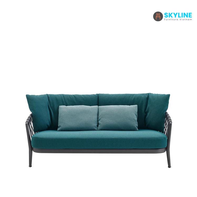 Phần ghế và lưng được đan bằng dây dù, mang lại cảm giác thoáng mát và thoải mái hơn, Khung ghế được sử dụng thép chắc chắn có độ bền cao đảm bảo sự ổn định. Khung ghế được phủ lớp sơn tĩnh điện chống gỉ sét ăn mòn và bên cạnh đó mang lại màu sắc hài hòa cho sofa này.