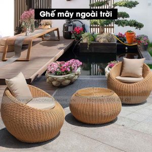 - Chất liệu: Sắt/ nhôm/ inox sơn tĩnh điện, vải ngoài trời, mousse D40/ D20, dây dù, mây nhân tạo.