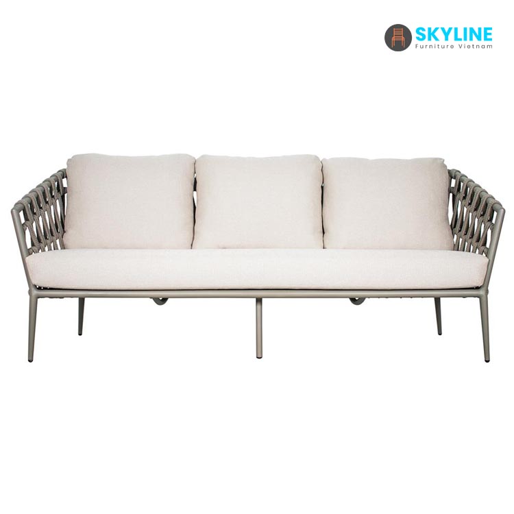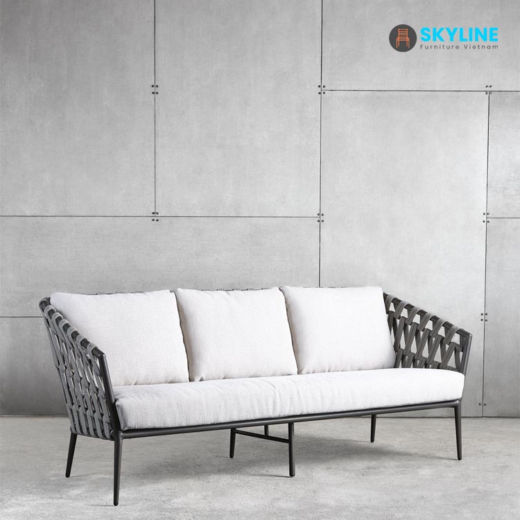 Ghế sofa ngoài trời SKLS032 được làm thủ công từ một dây tổng hợp tựa như dây vải với kiểu đan phong cách hiện đại, phong cách tối giãn cho đồ nội thất ngoài trời. Kiểu đan dây hình zigzag phức tạp, Lưng và cánh tay dốc duyên dáng được tiếp đất bằng chân vuốt thon thanh lịch.